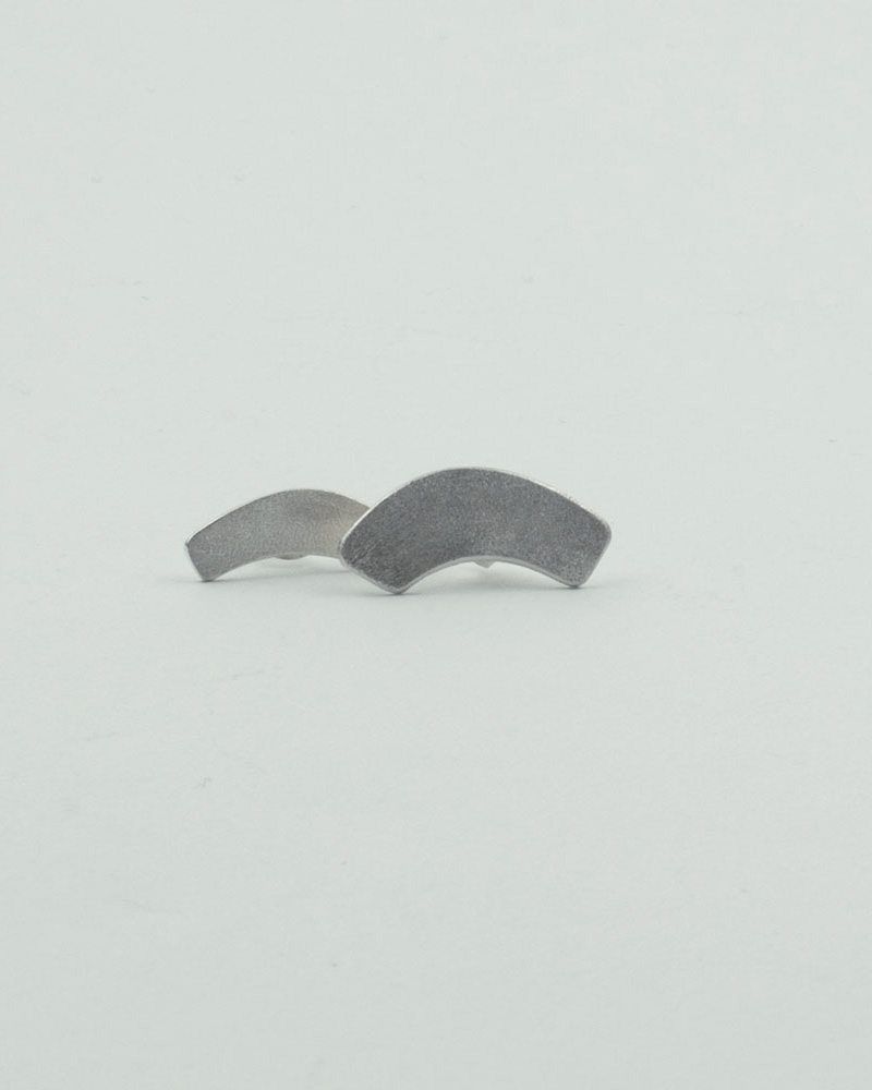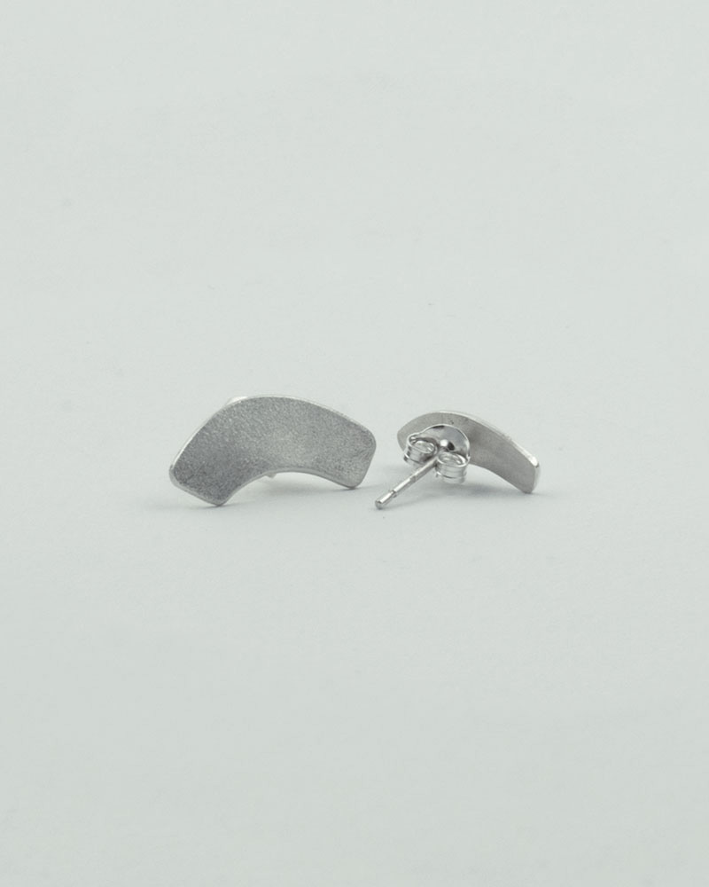 Des puces en argent 925 à la forme légèrement courbée et à la surface brossée douce et mate. Discrètes et originales, elles apportent une touche de caractère sans en faire trop.